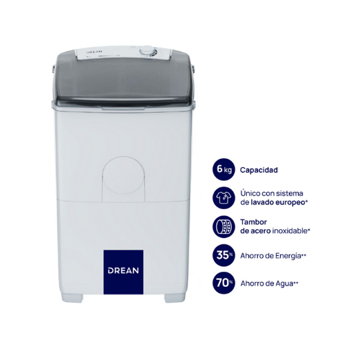 El Lavarropas Semiautomático Drean 6kg Blanco LTDR67SB0 combina capacidad, simplicidad y durabilidad. Su diseño de carga superior con tambor de acero inoxidable y 7 programas de lavado permite cuidar tus prendas con eficiencia. Fabricado en Argentina, cuenta con tapa transparente, dispensers de detergente y suavizante, y sistema de lavado europeo.