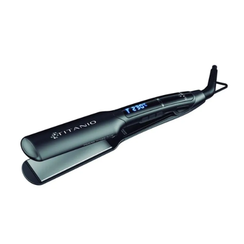 La Plancha X-Wide Digital Titanio es ideal para un alisado profesional en casa. Con placas extra anchas revestidas de titanio pulido, distribuye el calor de manera rápida y uniforme, protegiendo la fibra capilar y reduciendo el frizz. Su triple emisión de ozono y iones hidrata profundamente y limpia el cuero cabelludo, dejando el cabello suave y manejable. Las placas basculantes se adaptan a las curvas naturales del cabello, minimizando el daño y facilitando el estilizado en una sola pasada, especialmente en cabellos largos y voluminosos. Su temperatura ajustable (150øC a 230øC) permite un control preciso según el tipo de cabello. Además, el cable giratorio de 360ø garantiza una experiencia cómoda.